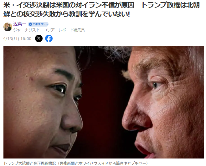 辺真一先生による記事で、朝鮮と米国の非核化交渉が決裂した原因の一部は、米国側にもある、という内容です。