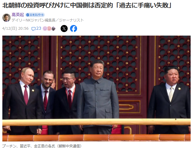 ●北朝鮮の投資呼びかけに中国側は否定的「過去に手痛い失敗」