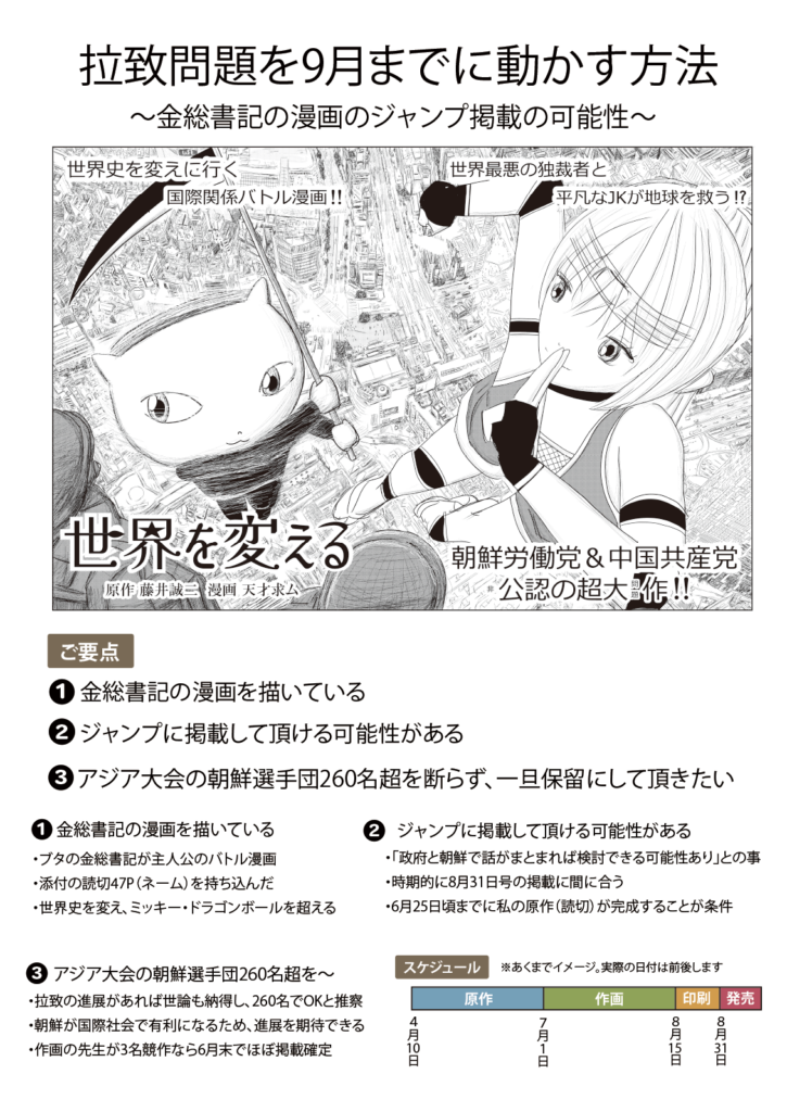 印刷用のPDF(A4で7P)はこちらです。 上の画像は表紙です。 各ページを分けたリンクです。↓ ご挨拶&目次 ジャンプ編集者様のフィードバック ジャンプ+編集者様のフィードバック これまでの経緯 ご送付先一覧 日本サイドの皆様へのご挨拶 拝啓春暖の候、...
