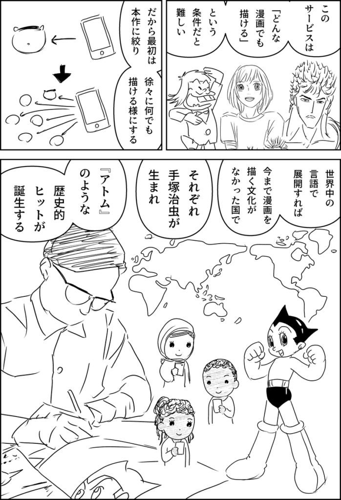 漫画アプリ『Change the World』と、テーマパーク『チェンジ・ザ・ワールド』の構想を正恩が語るネーム