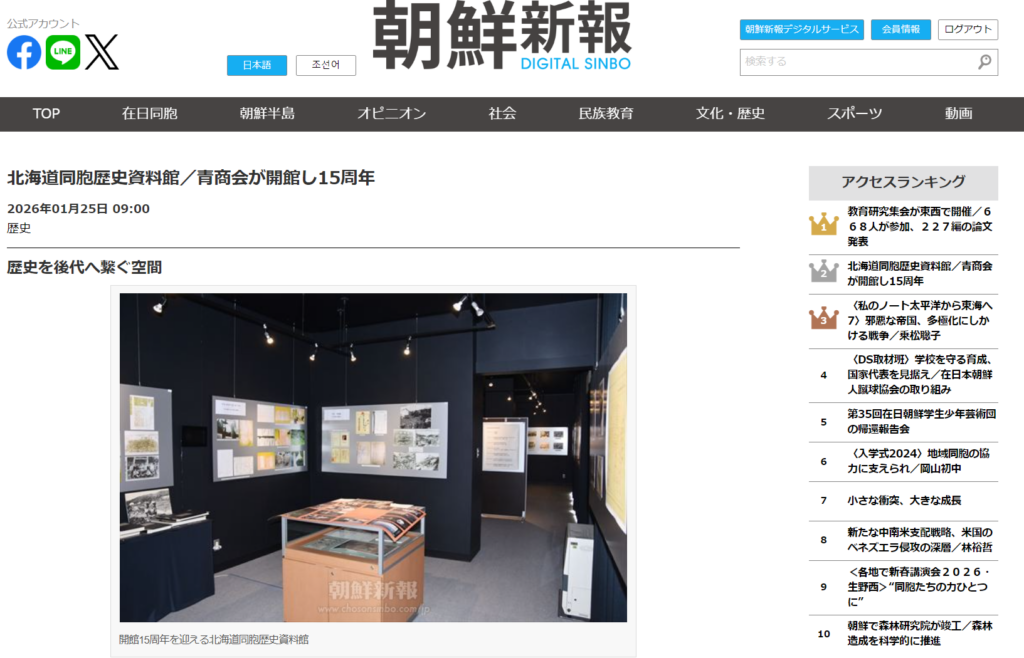 ■今日の朝鮮新報 ●北海道同胞歴史資料館/青商会が開館し15周年北海道の開拓には在日同胞の方々も多く連行され、強制労働に従事させられました。そのままたくましく地域に定着した方々によって、北海道でも在日同胞の皆さまの大きなコミュニティが形成され... -