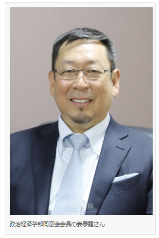 それに合わせた月1回の連載で、今回は政経学部と経営学部、それぞれの同窓会の姜泰龍会長・姜尚賢会長が寄稿されています。