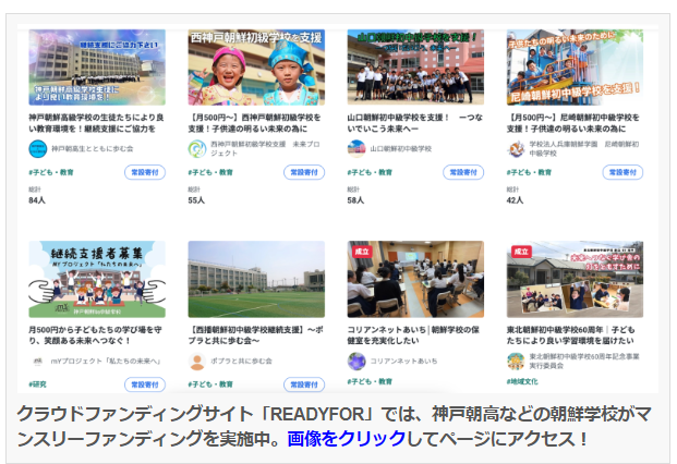 私個人は、朝鮮大学校のマンスリーサポーターを、1年半くらい前からさせて頂いており、先ほど西神戸初級のマンスリーサポーターも、ワンコインコースで登録させて頂きました。