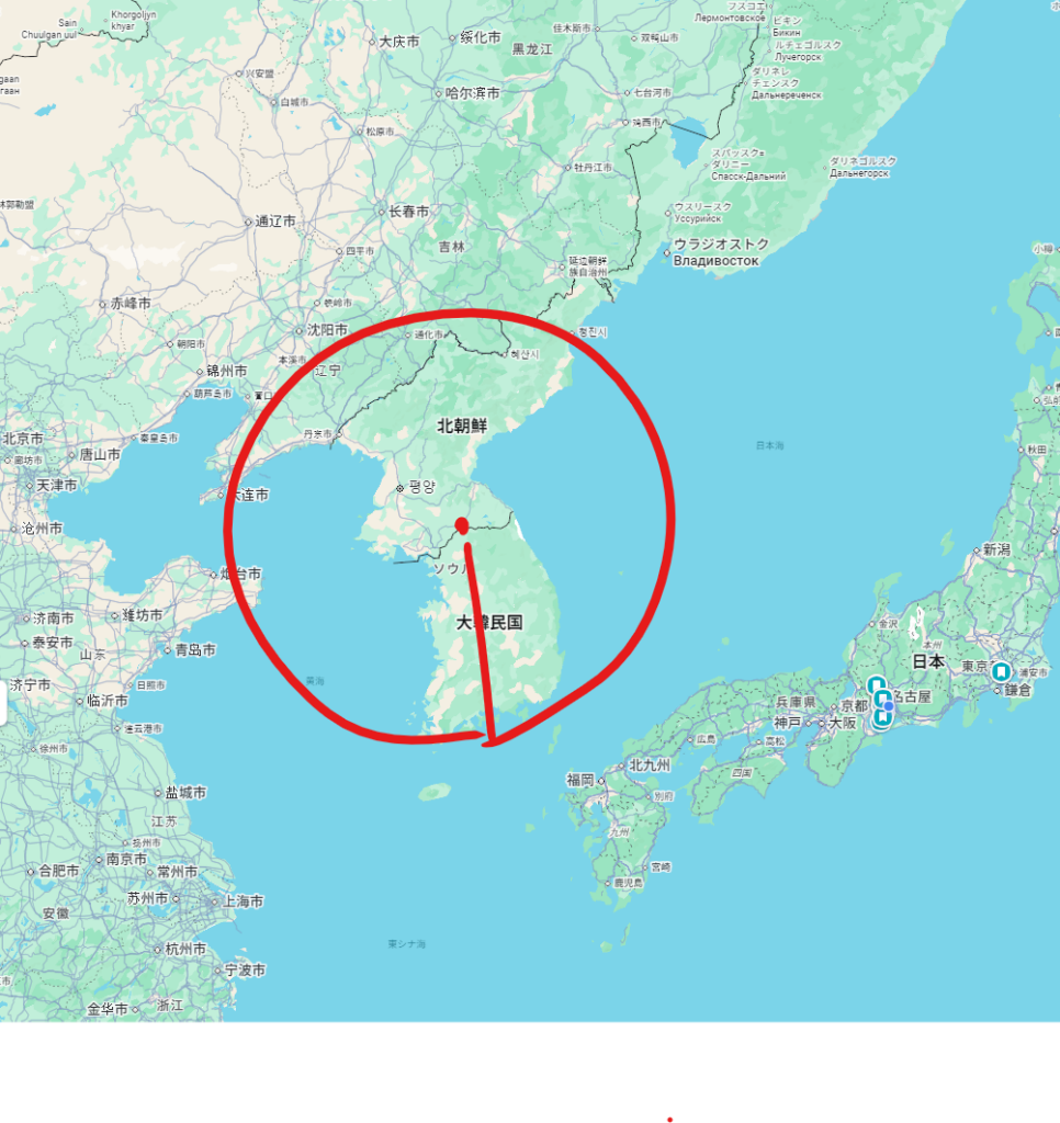 420kmとは添付の図のように「韓国がすべて含まれる範囲」です。