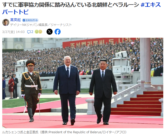●すでに軍事協力関係に踏み込んでいる北朝鮮とベラルーシ #エキスパートトピ(高英起先生)