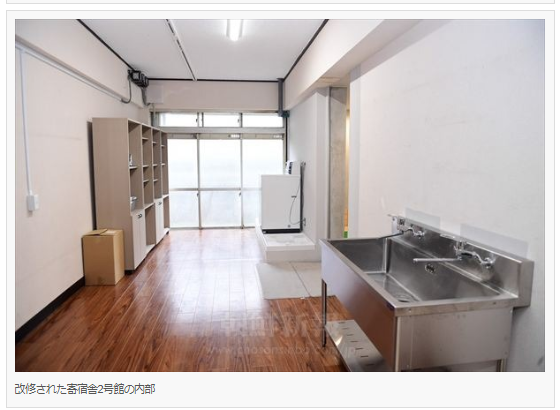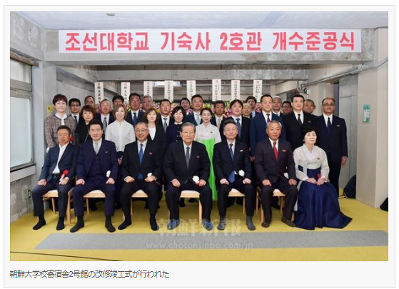 朝大の寄宿舎2号館の改修工事の竣工式の様子を伝える記事です。