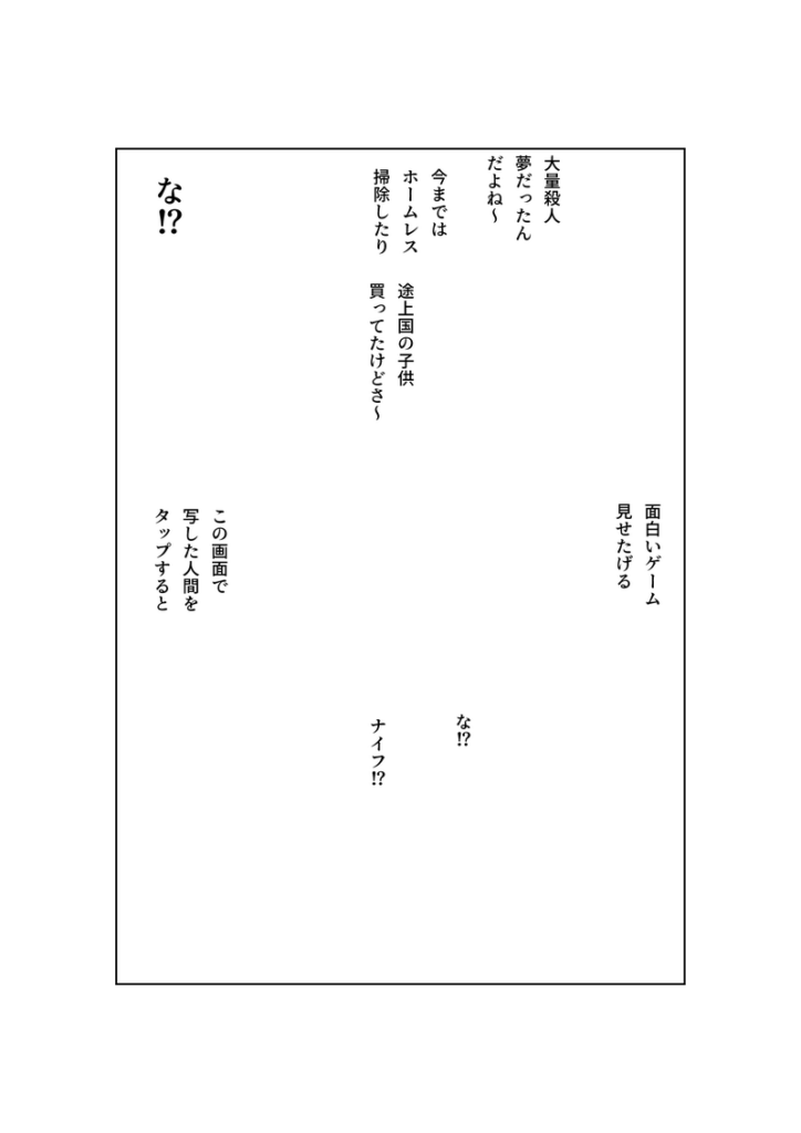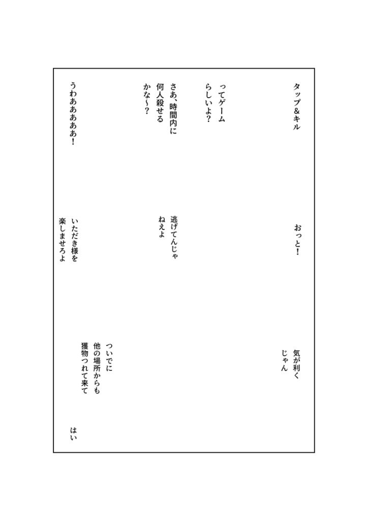 ⇒すぐに大量虐殺に入る。性的な台詞はなしに