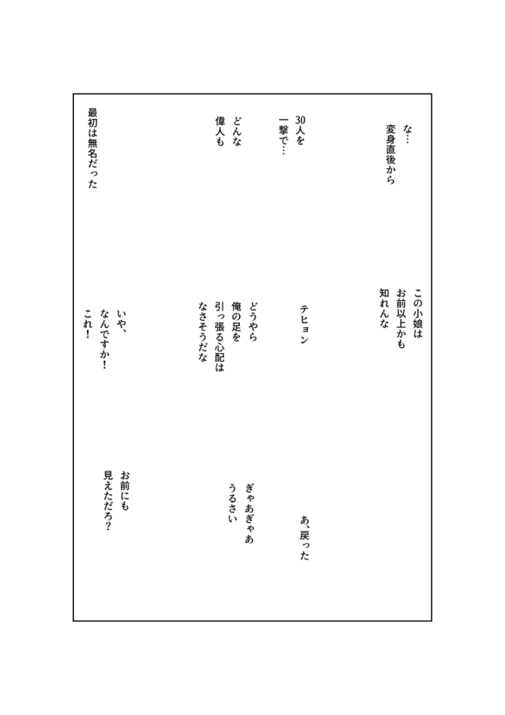 ・主人公が正恩の技で死なない理由を「世界を変える人間だから」にした
