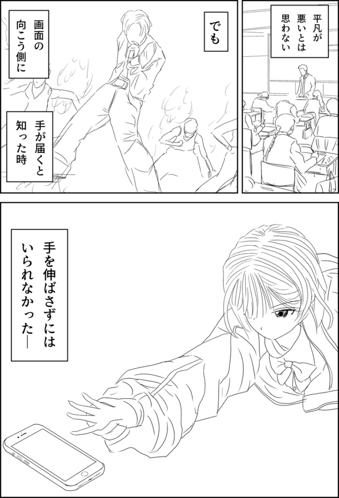 が、もうコマ割りや台詞が変化することはないので、線画に入ります。