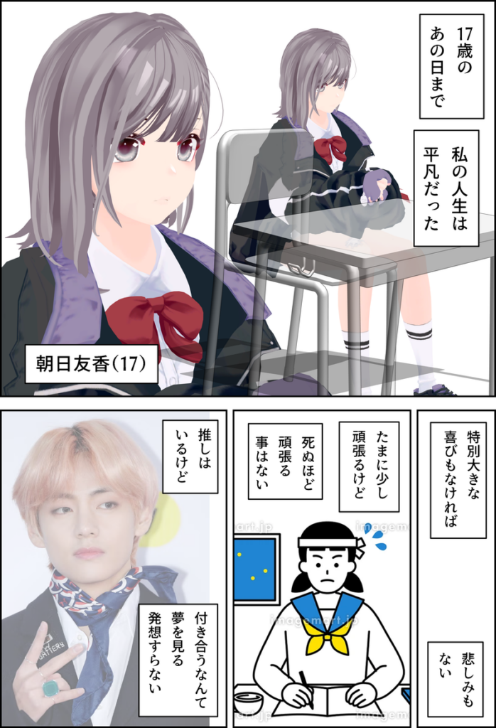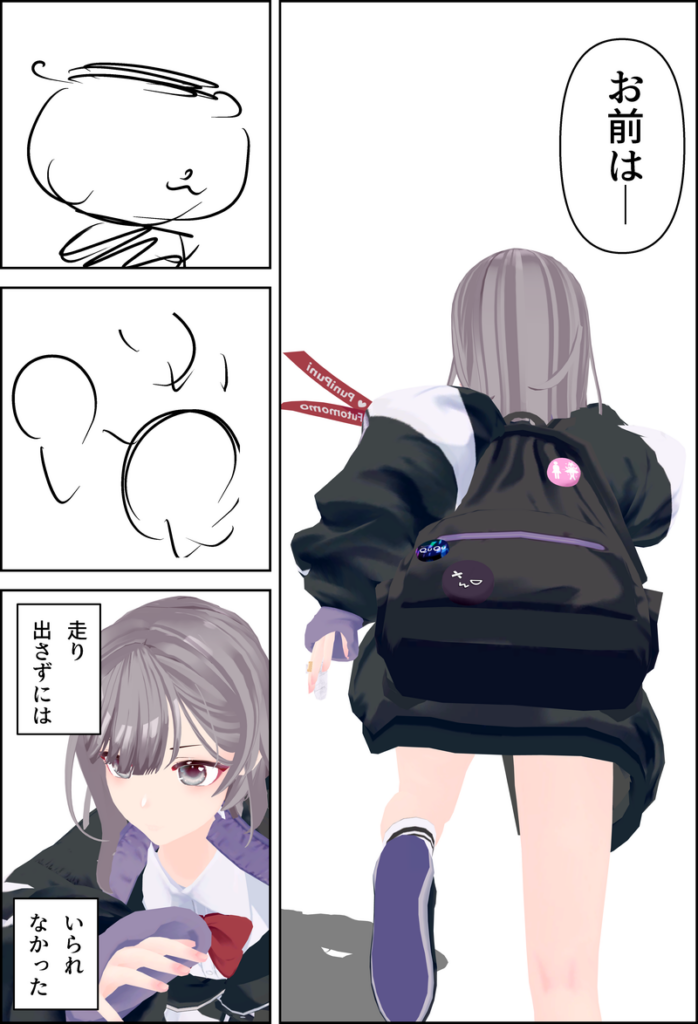 3Dモデルと画像素材を配置したネームが完成しました。