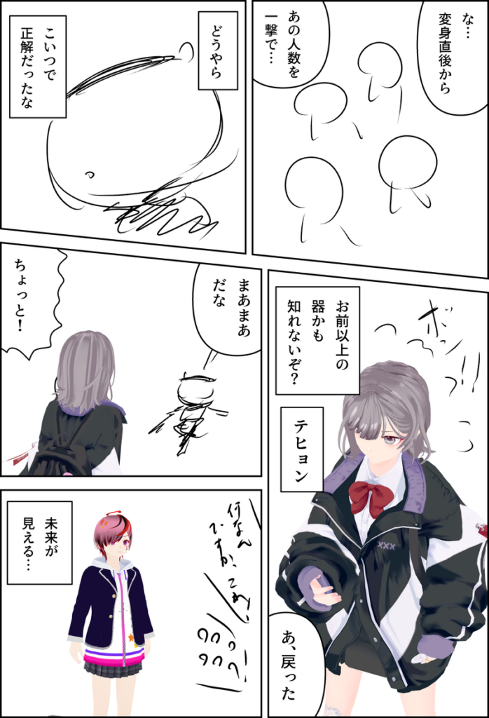 ラスト1Pと表紙、あとラフネームのままのコマも、まだ少しあります。