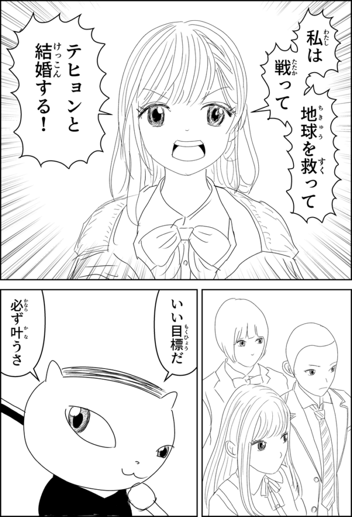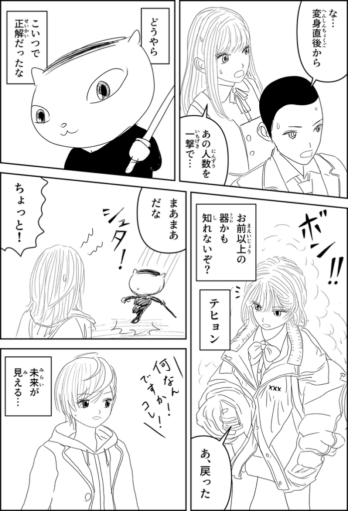 これを大きく改善する次のネームに入りますが、大筋の流れや世界観、キャラのルックスなどはこのネームを2~5割程度引き継ぎます。