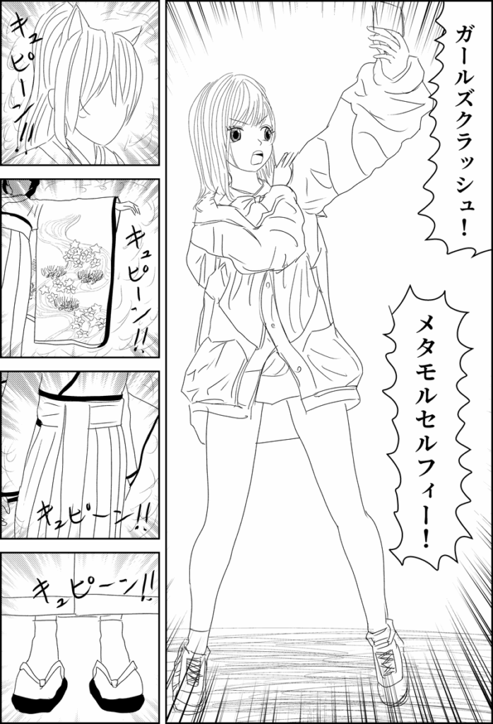 (真ん中の変身ページは、今日完成したネームからの流用です)