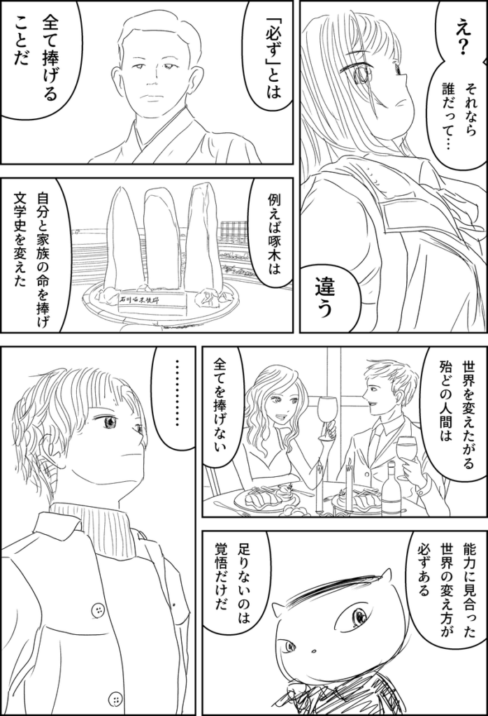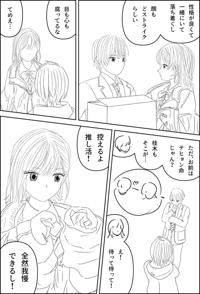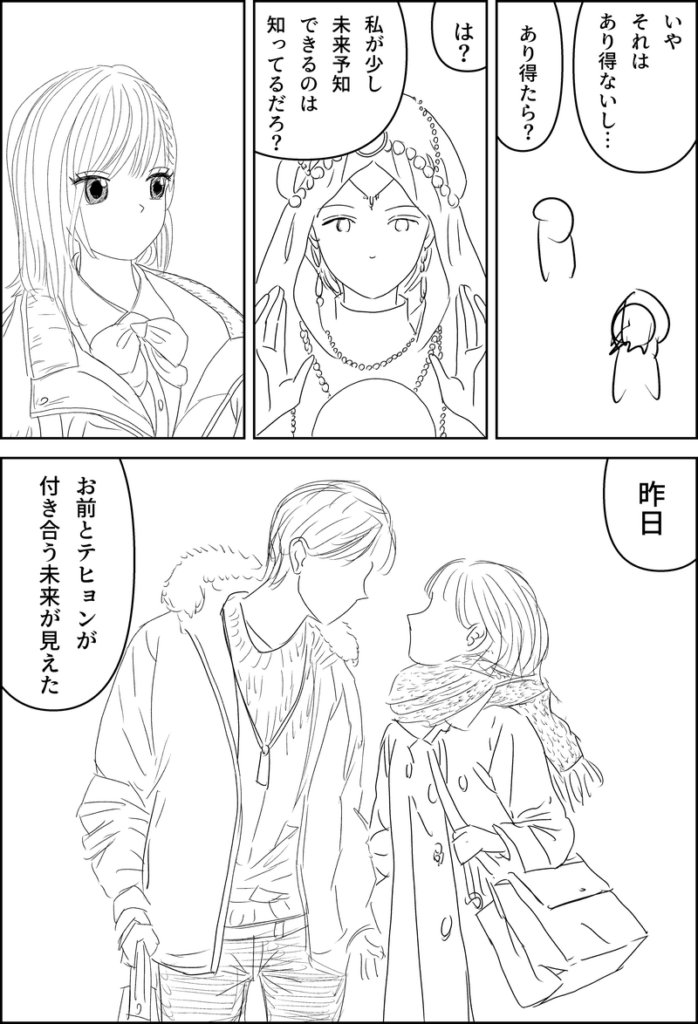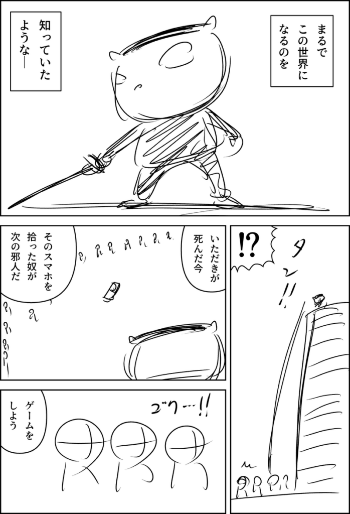 今日、これよりさらに面白いシナリオも思いついたのですが、2~5割程度今のバージョンを残せるのと、方向性はほぼ同じであるため、一旦このまま完成させます。