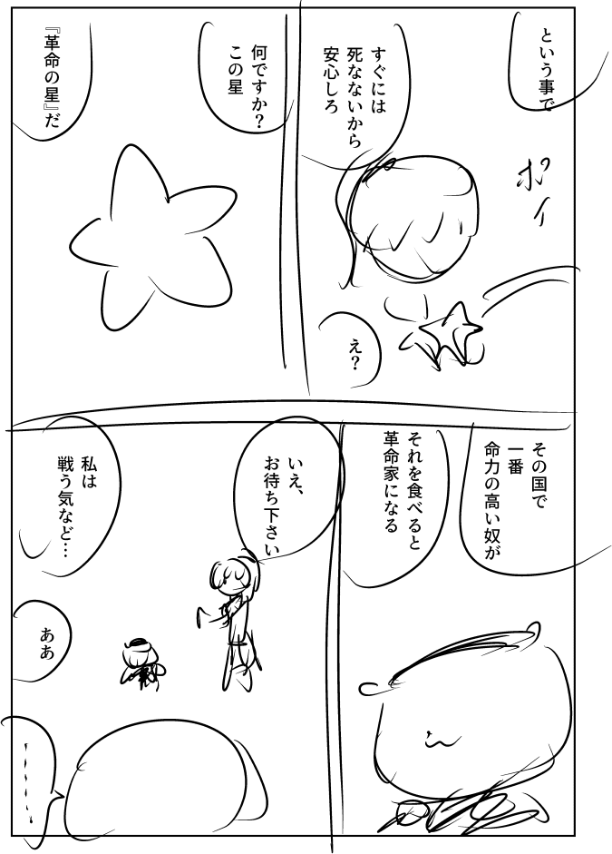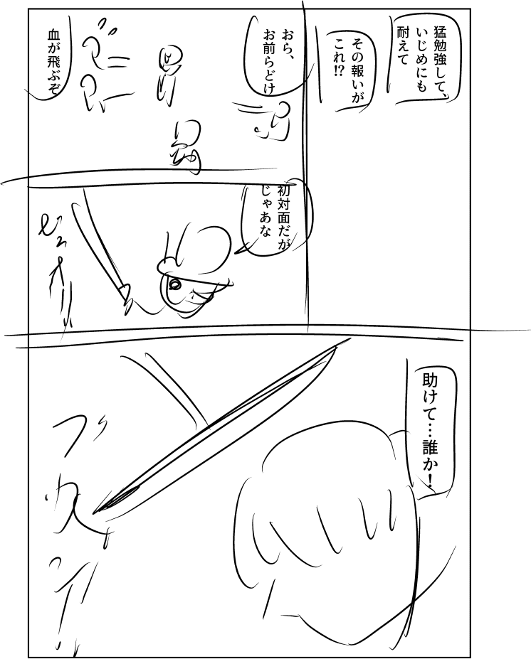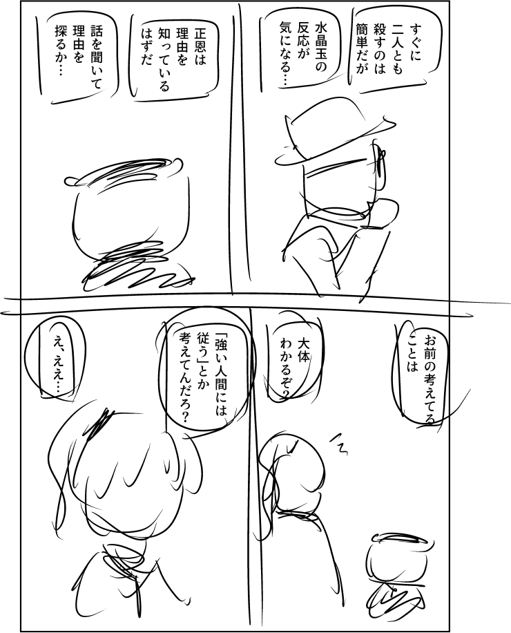 後半の伏線になる内容を入れ、昨日ラフネームにした前半も改善しています。