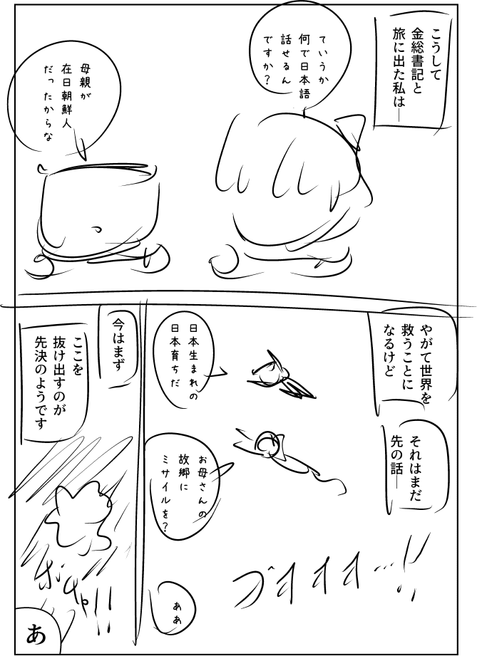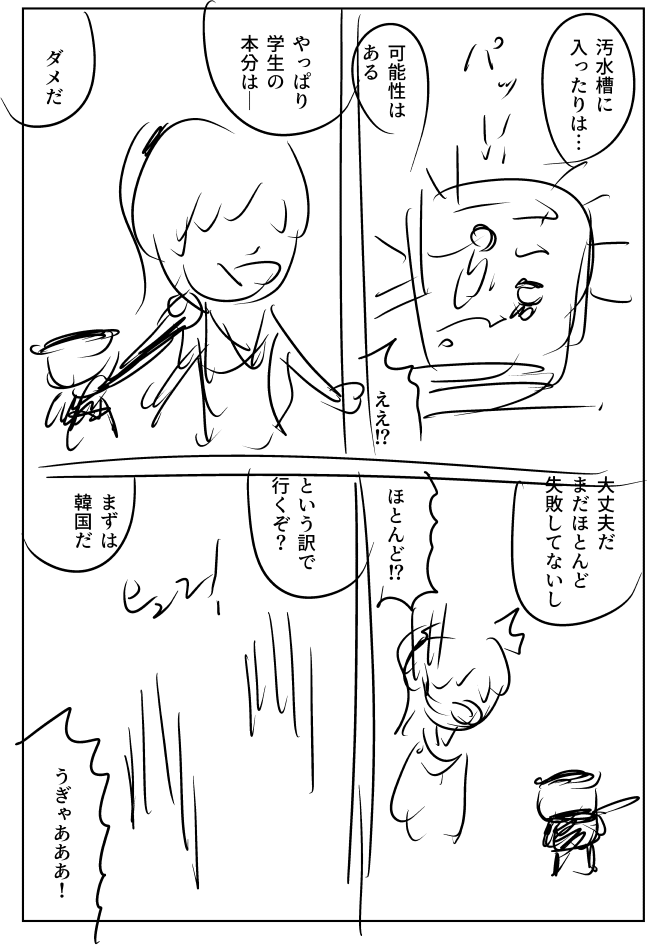 最後に「韓国の変な場所に飛ぶ」というオチが1コマあり、その場所だけ考え中です。