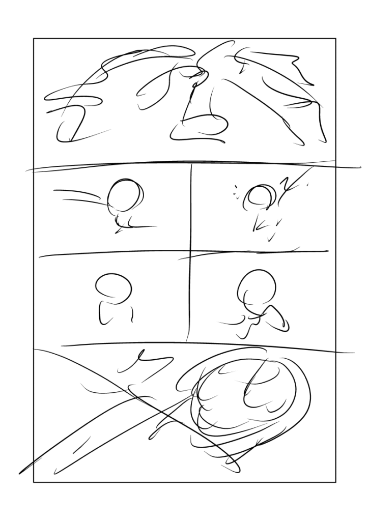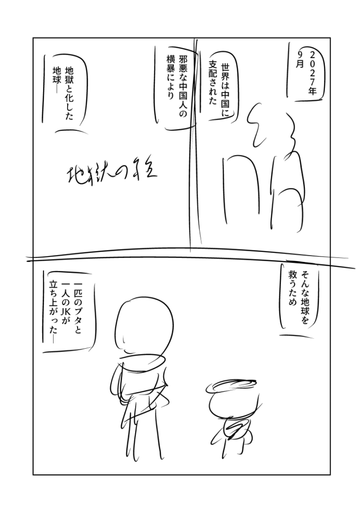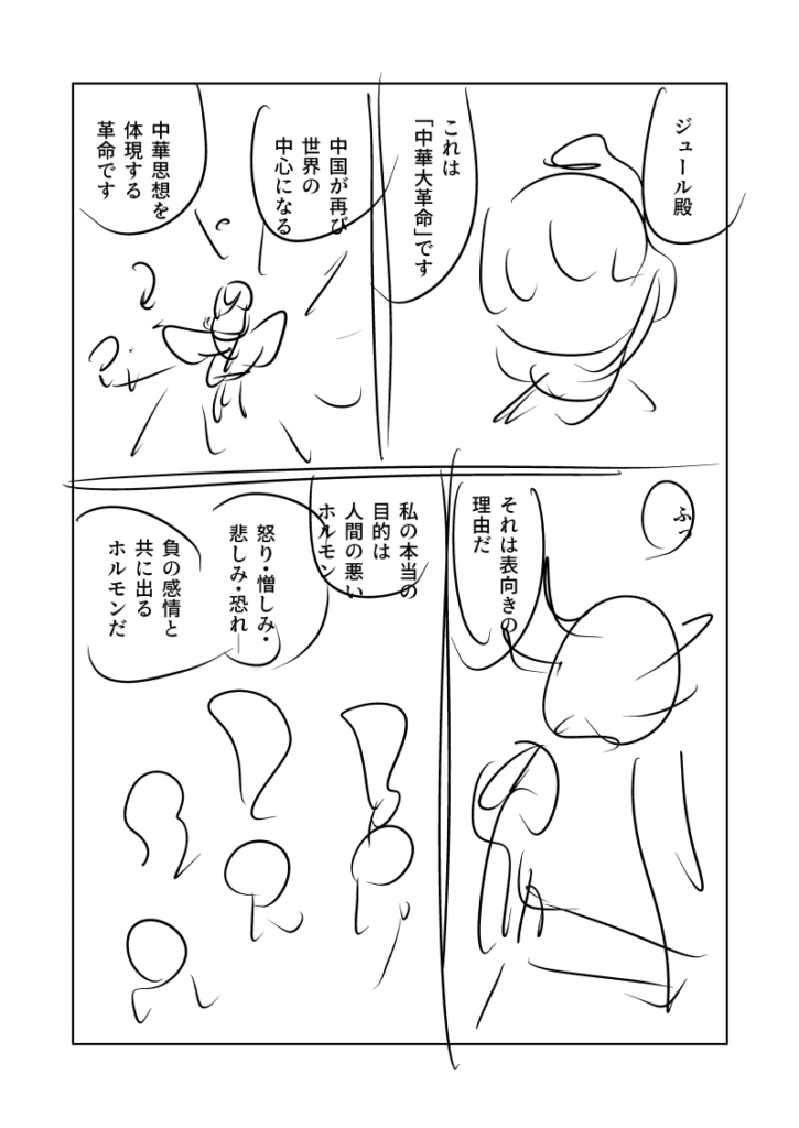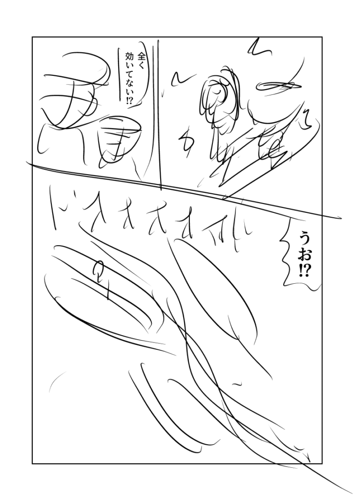 今日と明日で線画ネームに間に合うよう、今回は完全スピード重視で描きます。