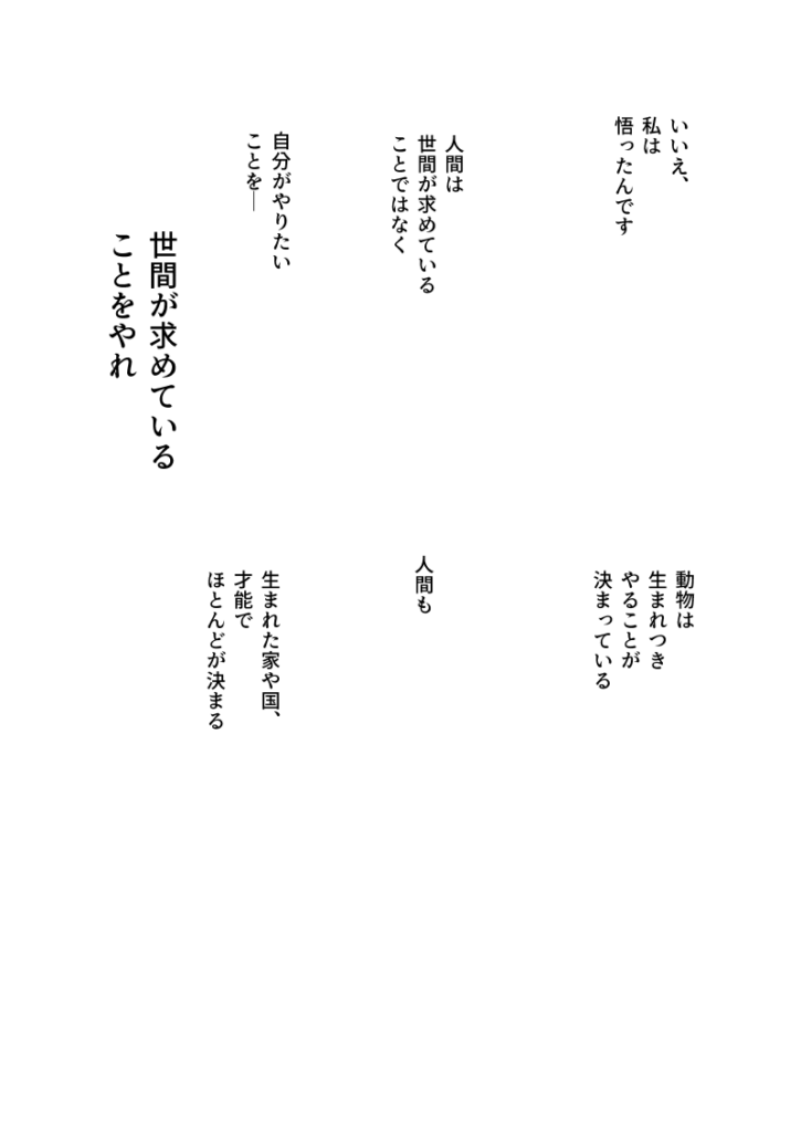 人間は、世間に求められていることでなく、自分がやりたいことをやるべきだと 求められてることをやれ