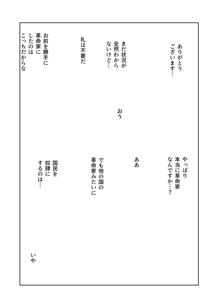 例は不要だ お前を勝手に革命家にしたのはこっちだからな
