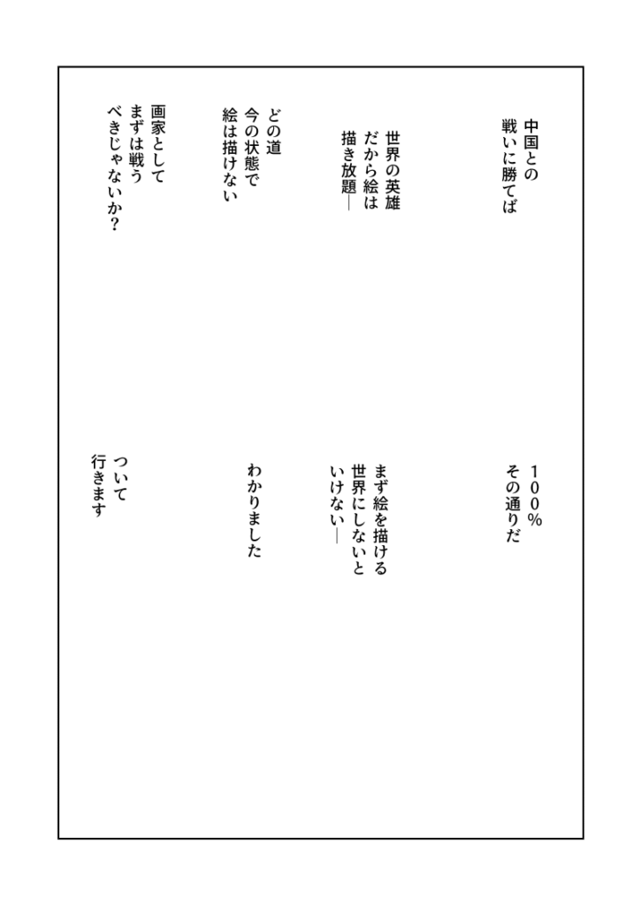 中国との戦いに勝てば 世界の英雄だから絵は描き放題―