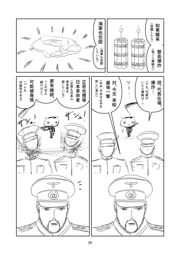 覚醒したら島ごと爆破する訓練を装って海軍も包囲している
